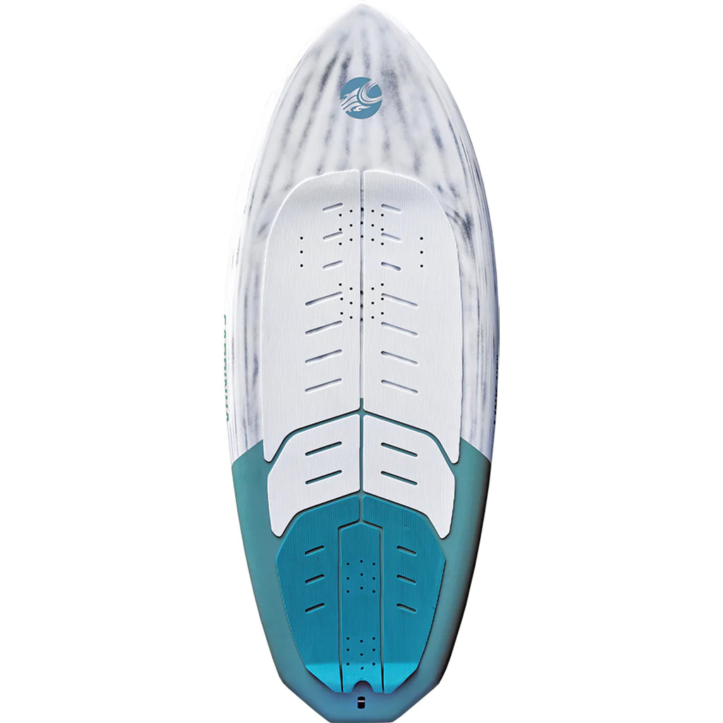 新しいダブルコンケーブノーズは、立ち上がって乗るときや着地するときの方向安定性を提供するだけでなく、乗っているときやジャンプの後に着地したときの計算された水の移動も可能にします。